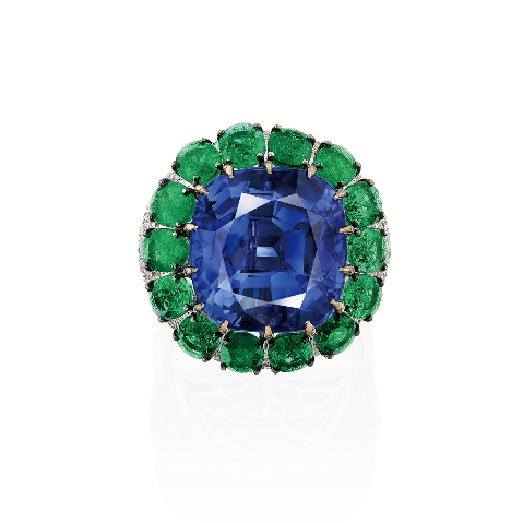 ▲2023秋季藏逸拍賣會緬甸天然無燒藍寶祖母綠戒 成交價420萬
