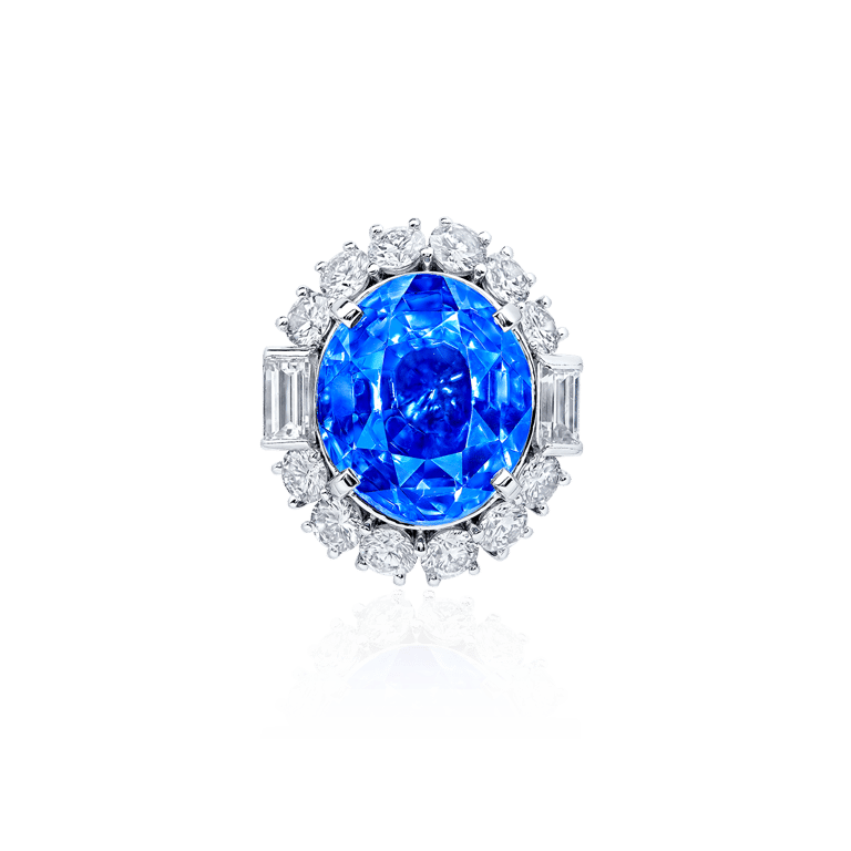 近年拍賣市場興起一股對高品質藍寶石的熱潮,尤其是無加熱、來源可確定的 Kashmir 藍寶,屢創紀錄。2025 年 5 月,「The Regent Kashmir」這顆重達 35.09 克拉的古董枕形藍寶戒指,在香港克里斯蒂拍賣中以約 950 萬美金成交,人均每克拉價格達到 $271,515,刷新藍寶石拍賣單價新高。